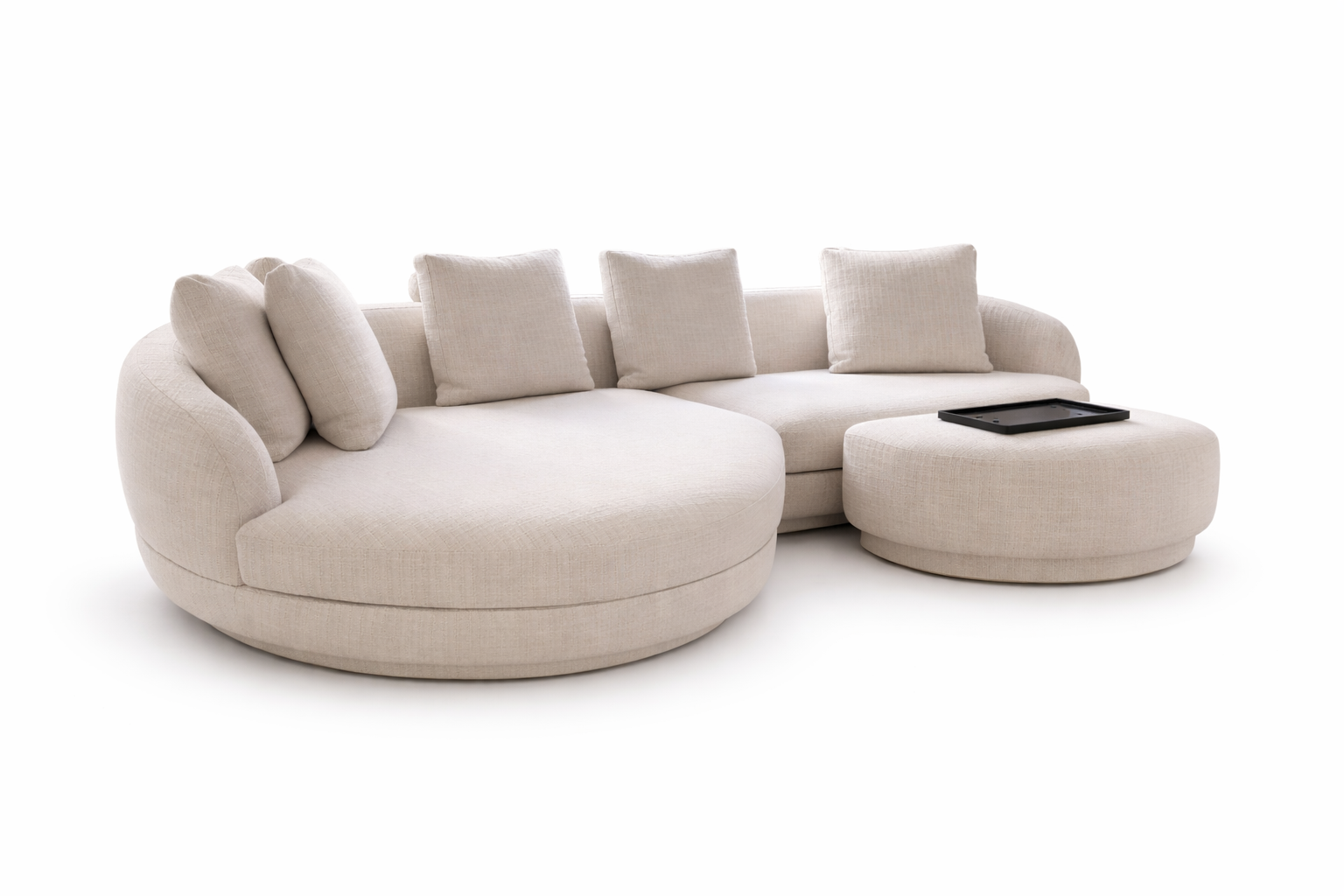 La nueva colección se expresa a través de un sistema versátil y envolvente que se adapta a cada momento y a cada espacio. Sofá, isla giratoria, butaca y cama comparten un mismo lenguaje de formas orgánicas, proporciones generosas y una comodidad excepcional. Cuatro piezas que dialogan entre sí y permiten crear ambientes serenos, contemporáneos y profundamente acogedores.
