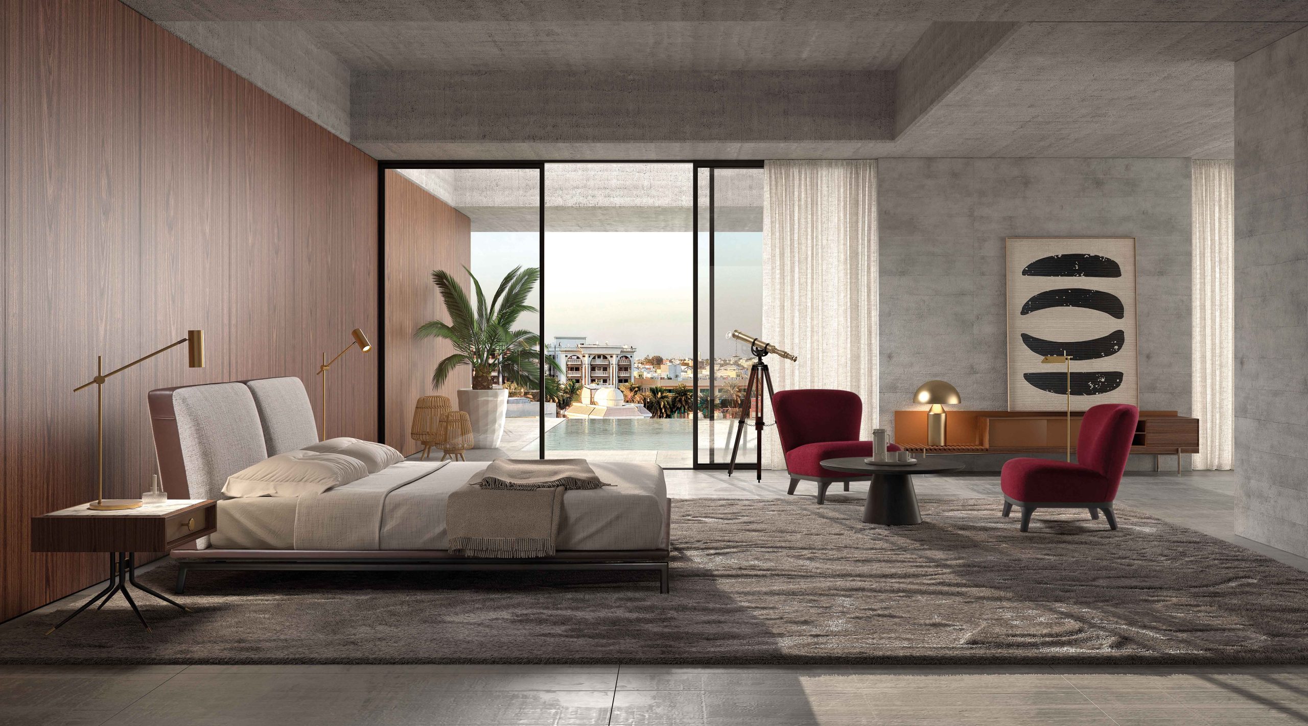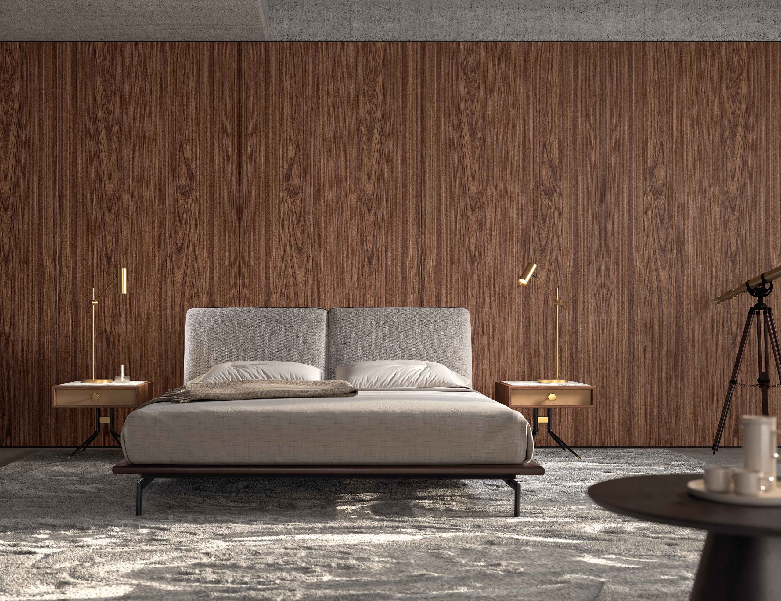 Inspirada en arquitecturas dinámicas y sinuosas, su diseño fluido y elegante convierte el dormitorio en un espacio sofisticado y acogedor, lleno de armonía.